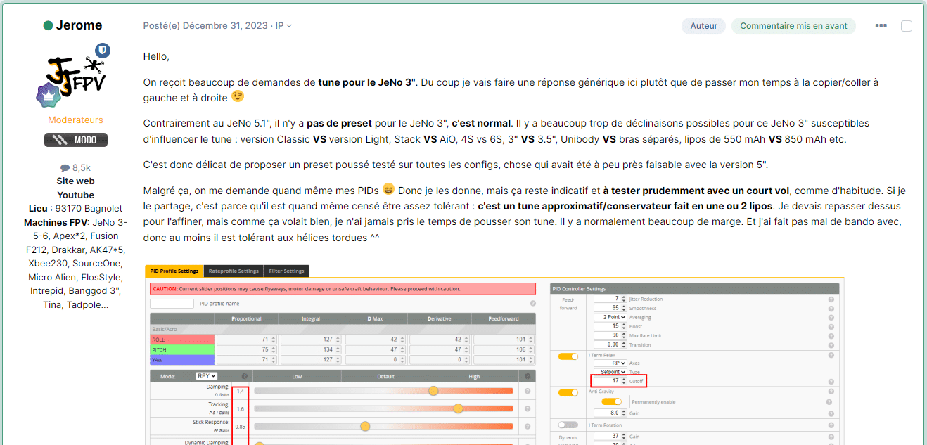Néanmoins, on a partagé sur le forum un tune qui semble convenir à la plupart des machines, mais disons que ça reste officieux.