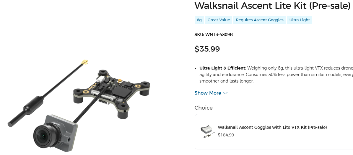 Ils ont également annoncé un nouveau VTX Ascent Lite+ qui monte à 500 mW et gère les 100 FPS !