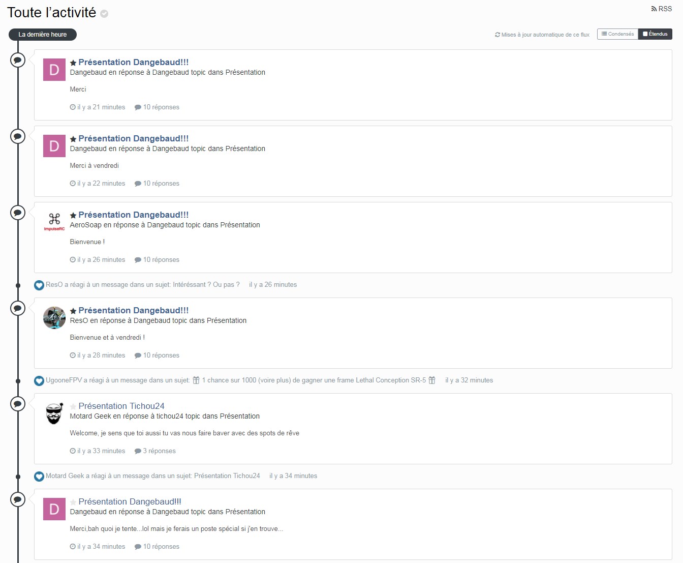 Comme tout bon forum, les discussions sont triées par catégories (électronique, radiocommandes, batteries, DroneBuilds, etc.). Cependant, quand il commence à y avoir beaucoup de rubriques avec plein de messages, c’est parfois compliqué de retrouver le nouveau contenu.