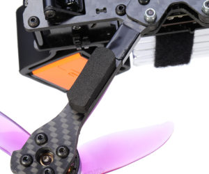 Il y a très peu de changement sur cette troisième version low profile du châssis X220. La top plate mesure 2mm et la bottom 3mm. Elles sont désormais séparées de seulement 2cm. Les bras quant à eux passent de 4 à 5mm d’épaisseur. Le tout est en carbone 3K.
