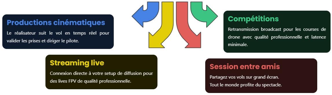 De la session bando entre potes à la production cinématique, en passant par les compétitions et le streaming live, FPVConnect s’adresse vraiment à tous les pilotes.