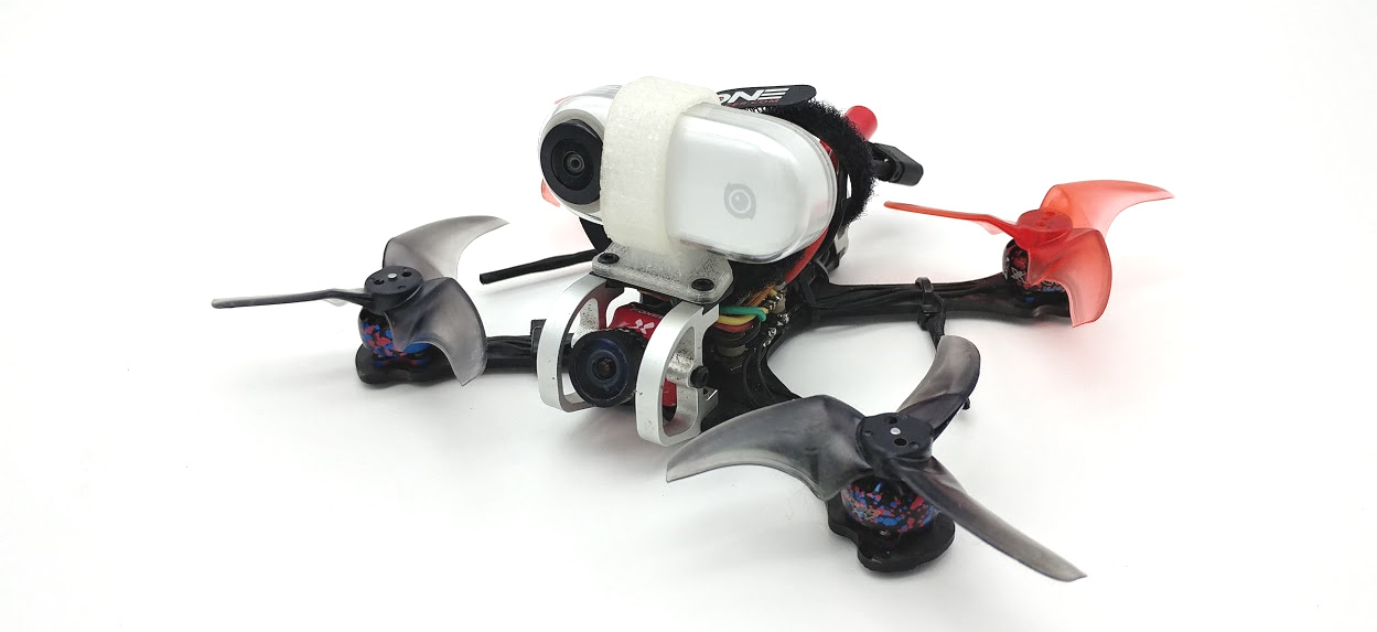 En mode FlowState, le verrouillage de l’horizon peut aussi s’avérer très intéressant : couplée à un TinyWhoop ou même à un Toothpick auquel on aura ajouté des ducts (ou pas), l’utilisation de l’Insta360GO permet d’obtenir un mini Cine Whoop !