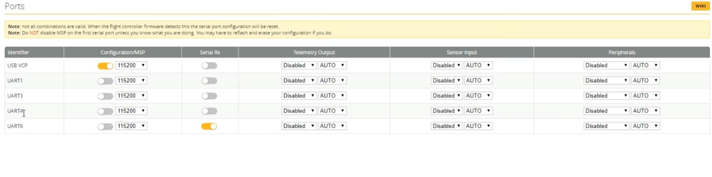 Onglet Ports, cochez l’UART6 en tant que Serial RX :